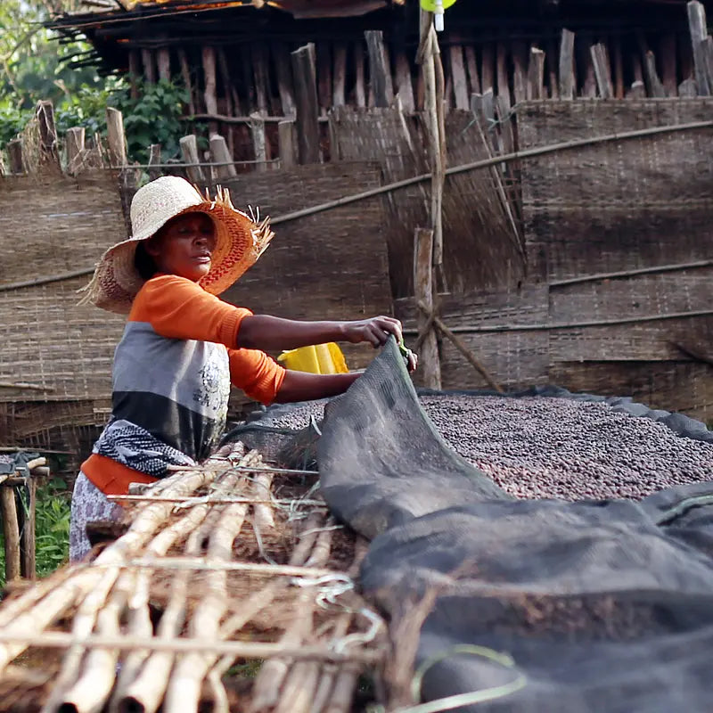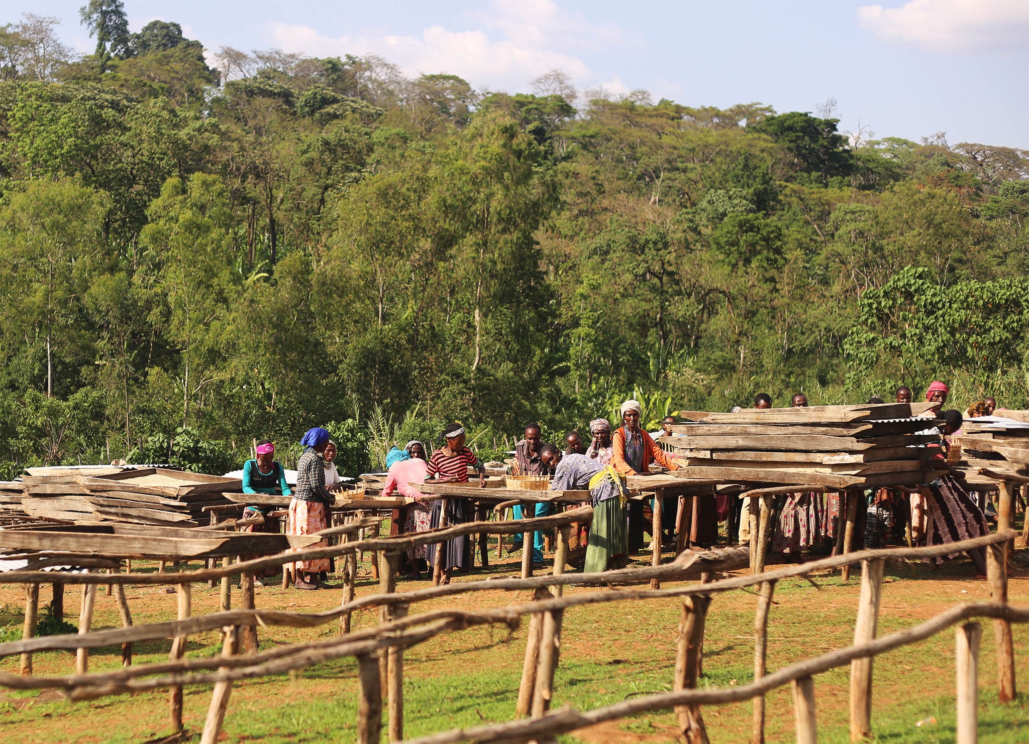 Ripe cherries are delivered to the wetmill for careful sorting and pulping, before fermentation for 36-48 hours, depending on the climactic conditions. After this point the parchment coffee is thoroughly washed and graded by bean density before being dried in the sun on raised African beds for 12 - 15 days (until the ideal moisture level has been reached). In the daytime the parchment needs to be raked and turned periodically to ensure a consistent drying process. The coffee is also covered between 12pm and 3pm to protect it from the hot sun, and at night time to protect it from rainfall and moisture. Once the coffee has dried to the right level it is transported to Addis Ababa for dry- milling, grading, intensive sorting and handpicking, before being bagged in GrainPro for export.